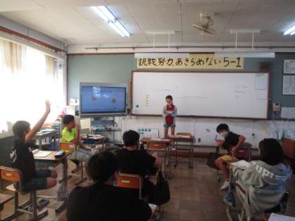 今日の英語科の学習ではいつもは先生が出題しているスパイダーゲームをみんなに出題してもらいました。オリジナリティあふれる問題でやっていて,とても楽しかったですね!