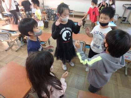 「いるかはざんぶらこ」という3拍子の曲に合わせて,手拍子を打ちながら歌いました。前回よりも自分のリズムをしっかりと打つことができていました。次の学習では,カスタネットやタンブリンを使ってリズム打ちをしようと思います。