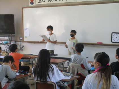 総合的な学習の時間にすいみんについてのアンケートを作成し,今日全校生にアンケートのお願いに行きました。
