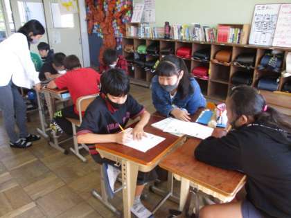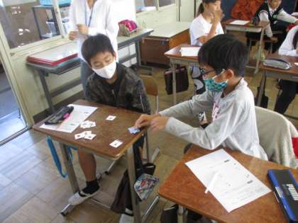 今日の外国語では,好きなものやほしいものなどを言う学習をしました。カードやワークシートなどを使ってたくさん伝える活動に取り組みました。