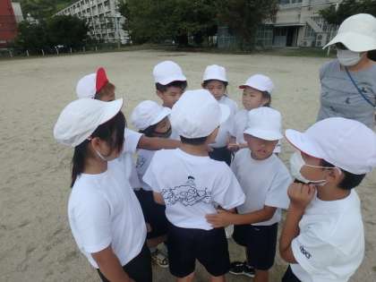 体育の学習で「くねくねリレー」と「ひきつぎリレー」をしました。走り方やバトンの渡し方を友だちと話し合って学習を進める姿がすてきでした!