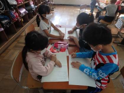 音読劇の準備をしました。読みたい場面ごとにグループをつくり,役割を決め,動きを考えました。