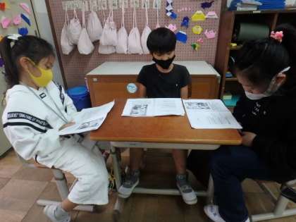 2回目の音読劇に向けて,グループごとに読み合わせをしています。少しずつすらすらと読めるようになってきました!