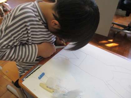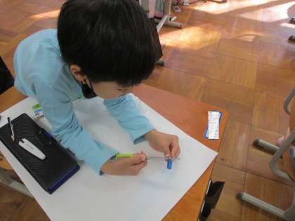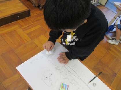 図工では,コンテをハサミで削り,ティッシュで色をぼかしながら,背景の色を塗りました。こすると淡いきれいな色になるので,子どもたちは「すごい!!たのしい!!」と言いながら夢中になって取り組んでいました。