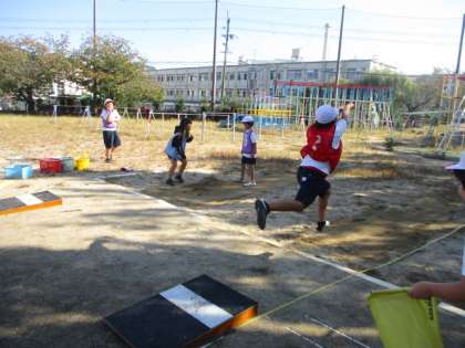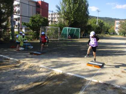 今日はふみ切った瞬間に手を前へ出す「アンパンマン戦法」を使って,練習をしました。いろいろな跳び方に挑戦することで,自分に合った跳び方を見つけることができます。一生懸命,チャレンジする姿がとてもすてきでした。