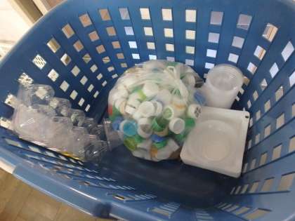 それぞれのお家から,たくさんの箱やカップが集まってきています。ご協力ありがとうございます。