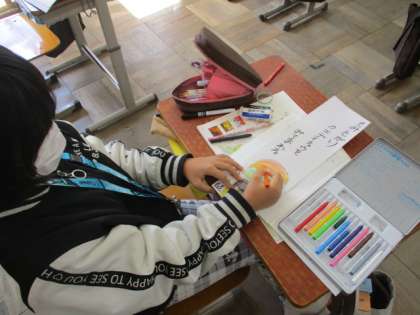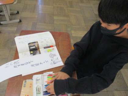 昨日の時間に,自分の好きなテーマを決めて,使いたい言葉を考えておいたので,とてもステキな俳句が完成しました。