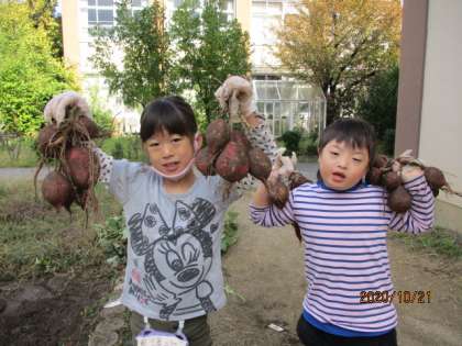 1学期に学校園に植え,毎日水やりをして大切に育ててきたサツマイモ。