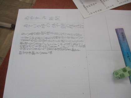それぞれの記事の大きさを考えたり,見やすい字の大きさや見出しの位置を考えたりしながら少しずつ新聞の形になってきています。