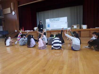 この日は,遊びの中でいくつかのミッションをクリアするという課題がありました。子どもたちは「できる〜!」と言いながら,しっかりと話を聞くことができていました。