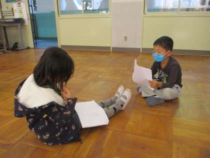おぐりすの子の集いにむけて,セリフや動きの練習をしています。役ごとに,「こんな動きにしよう!!」などと話し合う時間をとりました。こちらが指示しなくても,子どもたちから,素敵なアイデアがたくさん出てきて,毎回驚かされています。