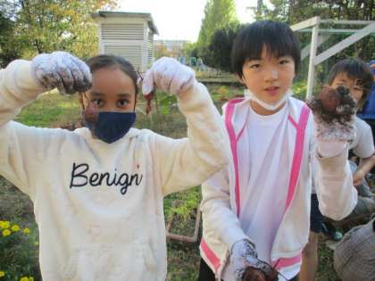 今日は,春に学校園に植えたサツマイモの収穫をおこないました。