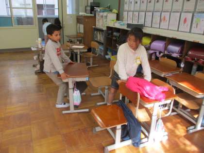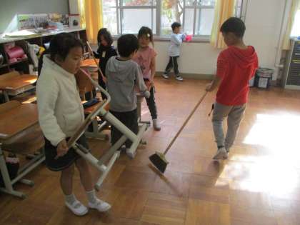 掃除にも慣れてきて,自分たちで素早くおこなえるようになってきました。重い机は,友達と一緒に運ぶなど,協力もばっちりです!