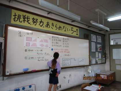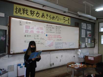 算数科では新しい単元に入り,直角三角形の面積を求めました。長方形や正方形の面積の公式を上手に使いながら,何とか答えを導くことができました。友達の求め方に「うわ〜!すごい!」という声もあり,みんなで学びを深めることができました。