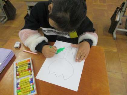おぐりすの子のつどいで使うチューリップの絵を描きました。自分だけの素敵なチューリップを描くことができました♪