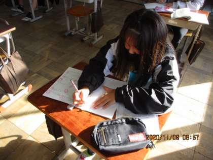 国語科ではたずねびとのまとめをしました。この物語を通して,自分の考えが変化したところを文章で書き表しました。文章を書くのが苦手な人も何とか自分の言葉で表現しようと頑張ることができました。早い人はたったの15分でノート1ページ分!書く力がついてきていて,うれしいです。