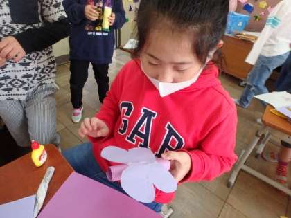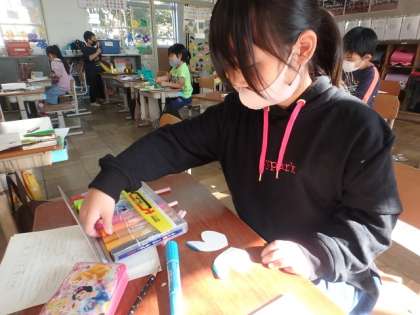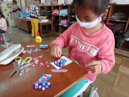 色々な材料を使って作りました。「どうやって作ろうかな…。」と悩んでいる子もいましたが,楽しんで取り組むことができました!