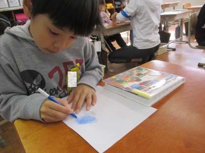 子どもたちは,とっても楽しかったようで,家でもやりたい!!と嬉しそうに話していました。できた作品は,持って帰っています。
