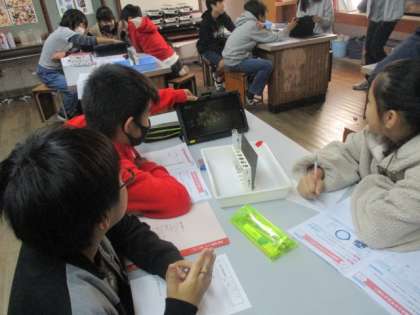 今日の理科では塩酸に金属を入れるとどうなるかについて調べました。今日は動画も活用して確認しました。