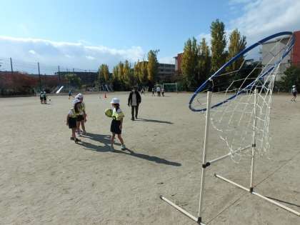 体育科の学習でパスゲームに取り組んでいます。この日は初めての授業でしたが,準備→体ほぐしの運動→試合と,スムーズに行うことができました。授業の最後には,試合の中での「こんな時どうする?」を話し合いました。次の時間が楽しみです!