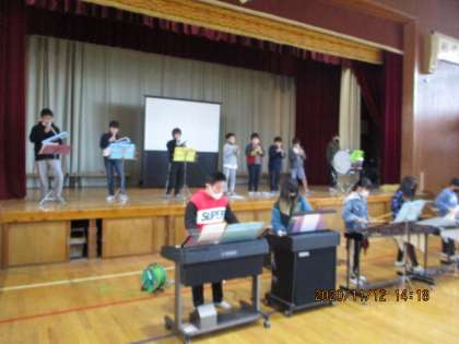 だんだんと音が合ってきました。さらによいものにするためには,楽譜をよく見て,強弱をつけ,友達の音をよくきくこと!がんばりましょう!