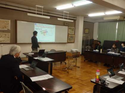 本校教職員でタブレット端末を使った学習について研修会を行いました。