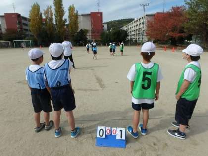 2回目のパスゲームの学習。前の時間に比べて,コートの中でボールがよく動くようになってきました。この日の準備もてきぱき行うことができたので,ゲームの時間をしっかりと確保することができました!2年生みんなの力です!