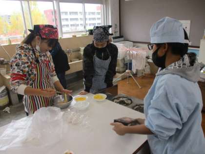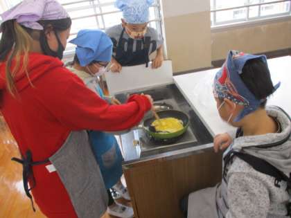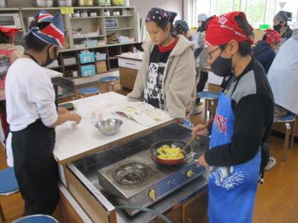 家庭科では調理実習をしました。今回はスクランブルエッグを作りました。1人ずつ順番につくりました。とても手際よく進めることができました。