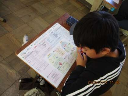 今日,ジョイントプログラムの結果を返却しました。京都市平均と自分の点数を比べてみたり,自分の得意分野と苦手分野を分析したりしました。大切なのは,今の自分は何ができていて,何ができていないのかを自分自身で理解することです。自分を知るいい機会にしてほしいと思います。自分ノートで復習をして,自分の力を高めていきましょう。