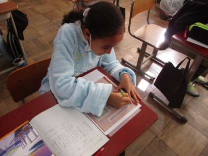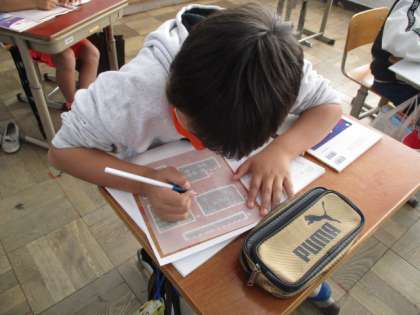 最初は,5つある花壇の広さをどうやって比べるかをみんなで意見を出し合い考えていきました。