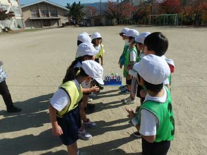 チームで攻め方や守り方を工夫した作戦を考えました。なかなか実践することは難しかったようですが,チームごとにしっかりと作戦を考えることができていました。