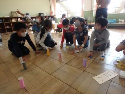 グループごとに考えた遊びを,友達と交流しました。お店の係になった人は,お客さんとして来た友達に上手に声をかけることができていました。みんな,とっても楽しんでいました!