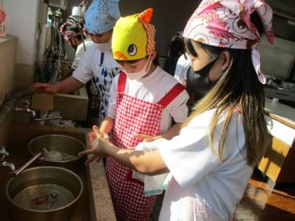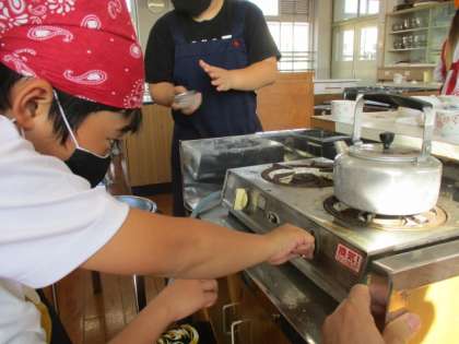 今日の家庭科は5年生になって初めての調理実習。
