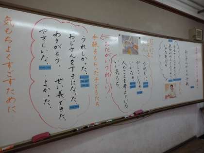 道徳の学習で「たくさんの人が使う場所での行動や気持ち」について考えました。例えば,学校や公園,駅では,どのように行動し,どのようなことに気を付ければよいのでしょう。子どもたちは,お話の中の電車の中で静かにしていた小学生や,それを見てにこにこしていた大人たちの気持ちを考えることで,しっかりと正しい行動や気持ちに気付くことができました。