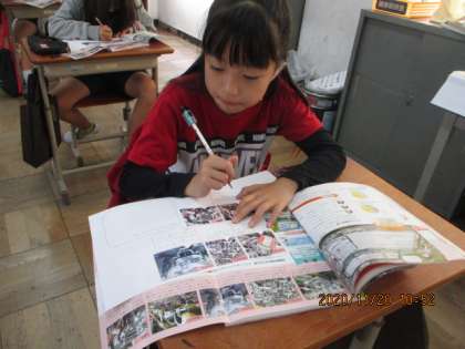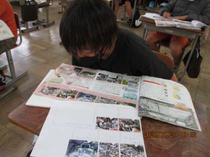 組み立て工場について調べました。自動車づくりの工夫や部品を余らせない工夫など資料を見て,まとめることができました。個人でまとめる活動も,黙々とできました。