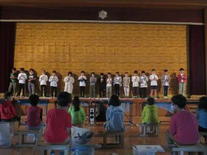 4年生のスタートは,音楽の時間に練習をしてきた「オーラリー」のリコーダー奏です。