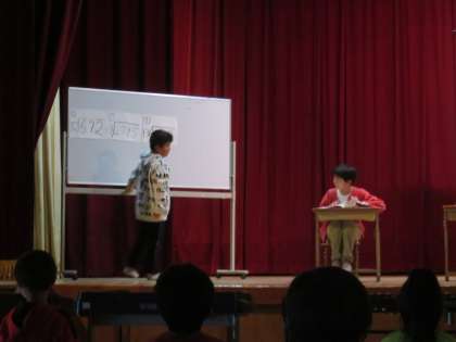 最初は,先生と子供役に分かれ,学校でのやり取りの場面です。