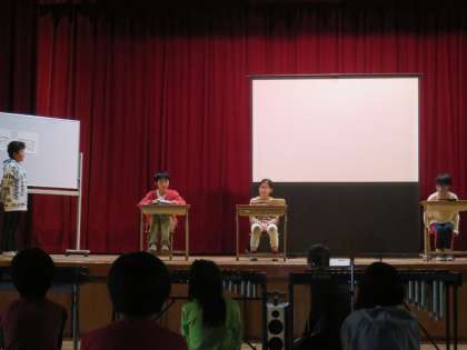 4年生は,総合の時間に学習をしてきた「すいみんのひみつ」をテーマに,全校生にアンケートを取った結果や,すいみんの大切さ,よいすいみんを取るためにはどうしたらよいかを,それぞれの役に分かれて発表しました。