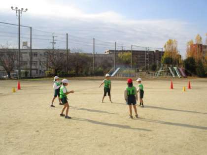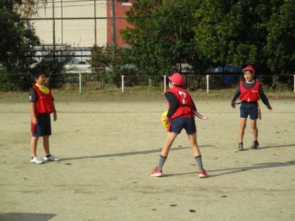 今日のタグラグビーの授業から,試合の前に,ミニゲームとして,今日対戦する相手と一度ゲームをしてみて,それをもとに作戦タイムと練習の時間をとり,そして試合に臨むという流れで学習を進めました。