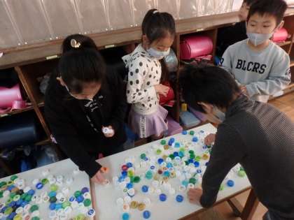 動くおもちゃ作りに挑戦しました。まずは車体・タイヤ選びです!子どもたちは遠くに走るように…まっすぐ走るように…と慎重に材料を選んでいました。