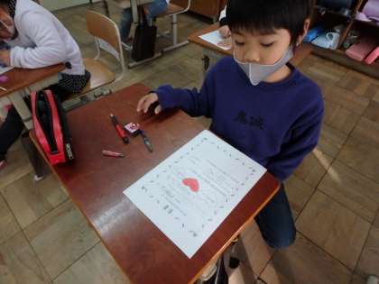 お楽しみ会のふり返りをしました。「楽しかった!」「○○ができてうれしかった!」という意見がほとんどでした。しかし,「もうちょっと遊ぶ時間を長くしたかった…。」という意見も。次にクラスで取組をするときには,準備や片付けの時間を短くして,スムーズに会が進行できるようにしたいですね。
