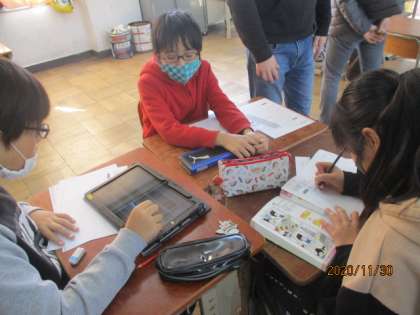 今回の外国語では,グループで都道府県のクイズを作りました。タブレットを使って調べて英語とイラストでクイズを作りました。金曜日にクイズ大会をします。