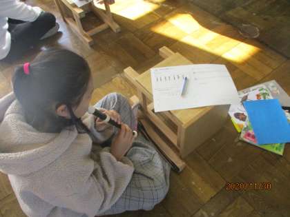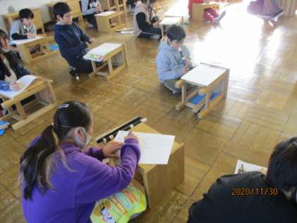 自分で好きな和音を使って音楽づくりをします。今日はどんな音階にするかをリコーダーで確かめながらつくりました。最後にみんなで合わせるととてもきれいな音色でした。