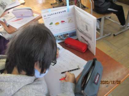火山活動や地震によって,土地はどのように変化するのかについて教科書や図鑑などを使って調べてノートにまとめました。