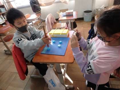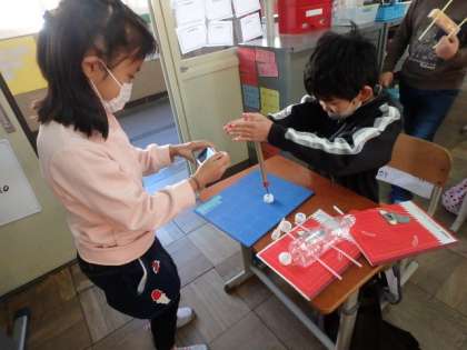 この日必要だったのは,ペットボトルのキャップに穴を空ける写真です。友達同士で協力しながら写真を撮りました。