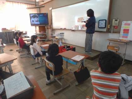 永井先生に来ていただき,「鬼」に関する本についてブックトークをしていただきました。「鬼」といえば,今年話題になったあのマンガ!子どもたちが楽しめる話題を盛り込みながら,楽しいブックトークをしていただきました。