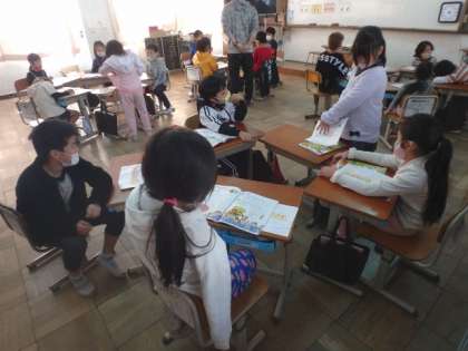 自分が作ったリズムを友達と交流しました。「ちょっと難しいな!」「もっとはやくやってみよう!」と楽しみながらリズム打ちをする子どもたちでした。