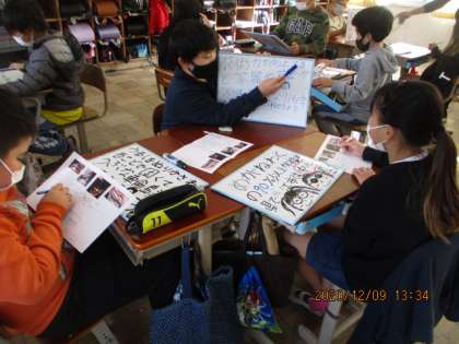 自分がまとめたことを,グループの友達に伝えました。短い言葉で色などを上手に使っている人も増えてきました。