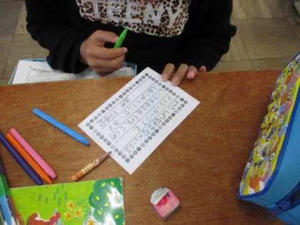 今日は,給食調理員さんへのメッセージを書き,正しいはしの使い方を覚えるために,豆つまみ体験をしました。