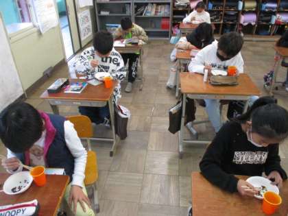 子ども達は給食を味わい,その後毎日感想を書いて給食の味を自分なりに表現しています。
